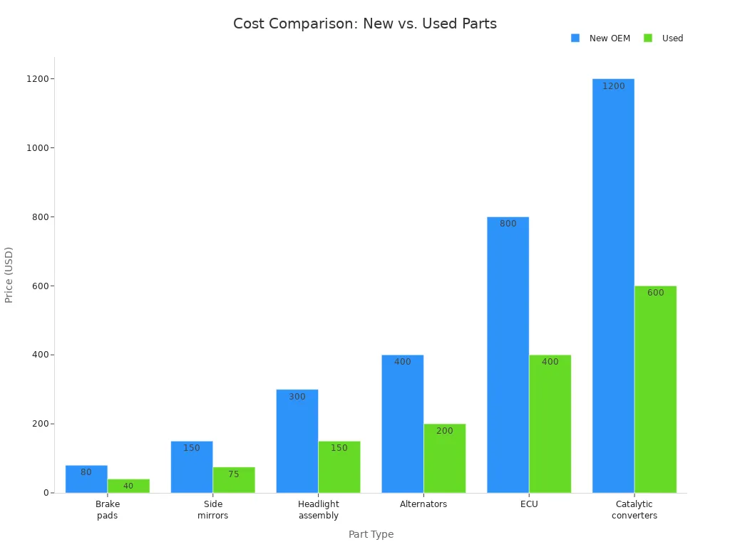 자동차 및 오토바이 기계 부품 제조는 구매자에게 다양한 선택지를 제공합니다. OEM(주문자 상표 부착 생산) 부품은 최고 수준의 품질과 신뢰성을 제공합니다. 이러한 부품은 엄격한 안전 기준을 충족하며 차량 사양과 완벽하게 일치합니다. 대부분의 소비자는 엔진 부품의 경우 OEM을 선호하며, 58%는 애프터마켓 부품보다 OEM을 선택합니다. 독립적으로 생산되는 애프터마켓 부품은 비용 절감 효과가 있지만 품질과 신뢰성은 다를 수 있습니다. 애프터마켓 제품의 호환성과 안전성을 보장하기 위해서는 검사가 필수적입니다. 재생 및 재생 부품은 특히 구형 차량이나 임시 수리 시 경제성과 신뢰성을 모두 고려합니다. 아래 표는 다양한 부품 유형의 품질, 비용 및 신뢰성을 비교한 것입니다.
